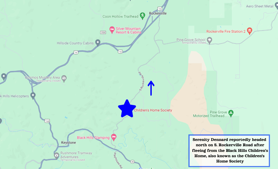 According to police, two witnesses outside the facility are believed to be the last people to see Dennard. She was reportedly seen running down a path that led to a parking lot. She was reportedly spotted near a cattle guard in front of the children’s home before she ran north on South Rockerville Road and vanished into the woods.